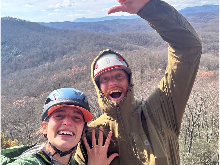 Chadwick and Courtney got engaged on November 15th, in true camp world fashion, while 150 ft up on Lower West Right at Cedar Rock! We are thrilled and excited to have these two already signed on for Summer 2026 Staff!